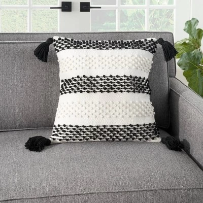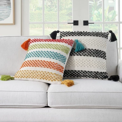 Be the first to review “18″x18″ Woven Loops Striped Square Throw Pillow With Tassels – Mina Victory” Cancel reply