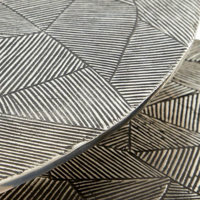 Bring a finishing touch to your home with an inviting appeal with this beautifully crafted accent table. A compact friendly table providing you with additional surface storage space any where in your home. Tripod metal side table are best displayed near upholstered sofa or metal beds with books and potted plants for an elegant look. This item ships in 1 carton. Intricate details on the tabletop surface create the theme. Suitable for indoor use only. This item ships fully assembled in one piece. Maximum weight limit is 100 lbs. Made in India. This gray colored end table comes as a set of 2. Contemporary style.
