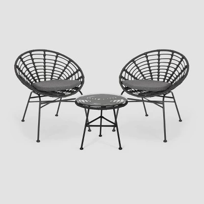 Throw on a pair of sunglasses and settle back with a chilled glass of lemonade in the comfort of this Christopher Knight Home Pigment 3pc Iron Modern Boho Chat Set . With a perfect combination of rattan and metal, this chat set brings a charming yet minimalistic structure that also offers incredible stability. The wrapped rattan design, thin angled legs, and cozy water-resistant cushions bring both comfort and a timeless look to your outdoor space. Finished with a glass side table, this Christopher Knight Home Pigment 3pc Iron Modern Boho Chat Set offers an undeniably stylish flair to your home.