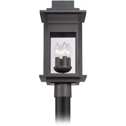 Franklin Iron Works Outdoor Post Light Fixture Black Specked Gray 19 1/2″ Clear Glass For Exterior Garden Yard Patio Driveway