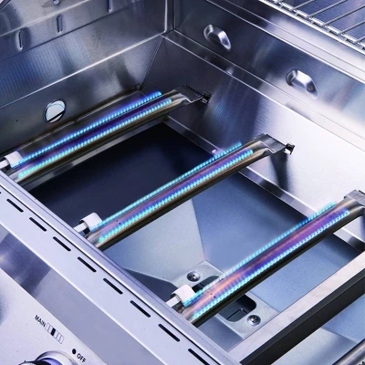 - Porcelain coated cast iron cooking grates designed for even cooking