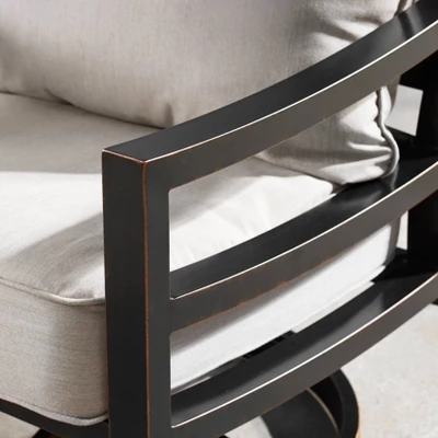Whether your outdoor retreat is located in the mountains, on the coast, or somewhere in between, this fire table set will extend your evenings with friends and family around the fire. With this addition you can enhance your outdoor setting with even more ambiance and relaxation. This fire table set comes with an Outdoor Aluminum 42 in. Square Fire Table Set with Four Deep Seating Swivel Rocking Chairs, Fire Beads, Lid, Propane Tank Cover and Table Fabric Cover. The dimensions for the fire table are: 42″ L x 42″ W x 24.5″ H, 66.5 lbs. Each chair dimensions are: 28.3″ L x 33.8″ W x 34.2″ H, 27.3 lbs. The chair seat is 12.6″ H from the seat to the floor.