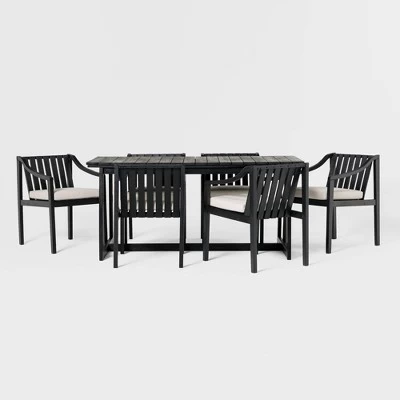 Saracina Home 7pc Modern Slatted Acacia Outdoor Dining Set With Trapezoid Legs