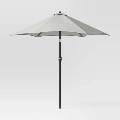 Add style and shade to your patio with the addition of this 9-Foot x 9-Foot Sunbrella Market Patio Umbrella from Smith & Hawken™. Made with fade-resistant, solid-colored acrylic fabric, it makes an easy pairing with any patio decor scheme. Supported by a steel frame and black pole, this umbrella is compatible with centered pole umbrella bases (sold separately). Convenient to use, the crank lift and push-button tilt lets you easily adjust this umbrella to keep everybody in the shade.