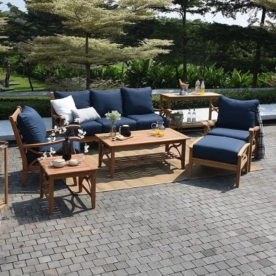 - UNIQUE COLOR We create various cushion color in unique blue spruce, cozy beige and calming navy color also two kind of frame color in natural teak and weathered teak, feel free to pick the most suitable color for your patio