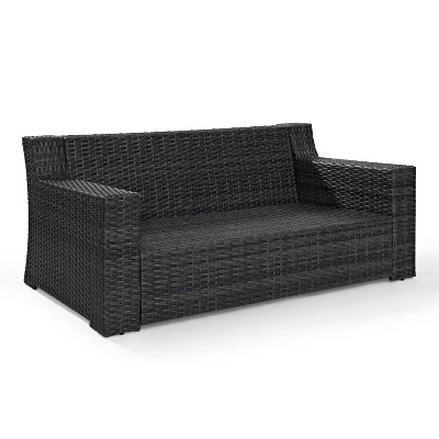 The generous seating of the Beaufort Loveseat creates an instant oasis on your patio or deck. This loveseat has beautifully woven flat resin wicker over a powder-coated steel frame and thick moisture-resistant cushions. With a low-profile and understated curves, the Beaufort loveseat’s sophisticated silhouette is the perfect perch for relaxing outdoors.