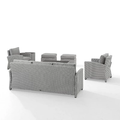 Bradenton 7pc Outdoor Wicker Sofa And Arm Chair Seating Set With Coffee Table, Side Table And 2 Ottomans - Gray/Gray - Crosley