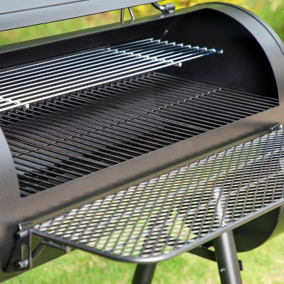 - Side Grill: extra grate, damper and drawer ash tray, provides 192 in.sq. cooking area