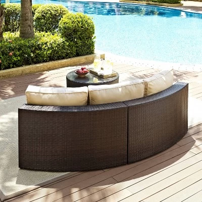 The Catalina 2pc Sectional Set transforms any outdoor space into the ultimate backyard retreat. The modular sofa and round coffee table feature all-weather resin wicker woven over durable powder-coated steel frames. Plush, moisture-resistant cushions make the sofa a comfortable spot to unwind, while the coffee table keeps drinks close at hand. Versatile and stylish, the Catalina sectional set can stand on its own or pairs beautifully with other pieces in the collection.
