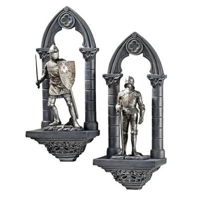 Instantly add Medieval architecture to your walls with this battle-ready knight guarding the palace gates. Foot-tall arches in Gothic stone protect the king’s servants, meticulously finished in metallic gold and silver. Cast in quality designer resin. Each approx. 5.5;”Wx4.5;”Dx13″H. 2 lbs.