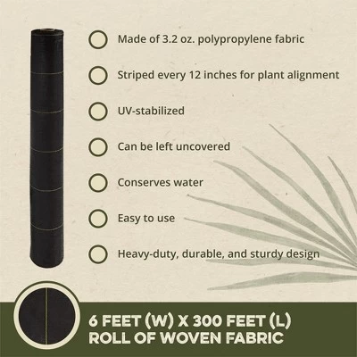 - Woven 3.2-ounce polypropylene fabric comes in a 300-foot roll