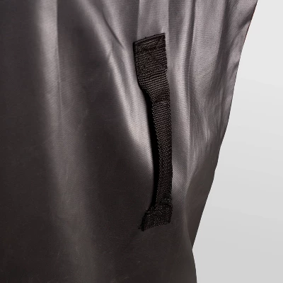 Provide year-round protection for your smoker, with this Dyna-Glo Premium Cover. Made with water resistant, heavy-duty PVC shell and 600 Denier polyester lining to withstand harsh elements. Double-stitched seams provide additional strength and durability to help prolong the life of the cover. This cover also features durable nylon side handles for easily removing or handling the cover before and after use; Hook and loop fastener adjustment straps for a customized fit and mesh side vents that provide much needed airflow for keeping the grill moisture free.