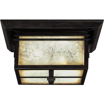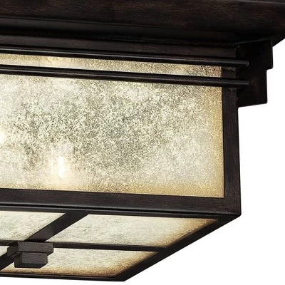 Inspired by traditional Mission Arts and Crafts styles, this flushmount ceiling light is a beautiful addition to an indoor or outdoor space. This classic design consists of a straight-lined frame with a lovely architectural look. A walnut bronze finish adds a handsome touch, while textured frosted cream glass panels provide a warm and welcoming glow.