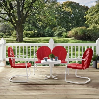 Relax and unwind on the nostalgically inspired Griffith 4pc Conversation Set. Designed to withstand the hottest summer days, this seating set’s steel construction and powder-coated finish resist rust and sun fade. Featuring a vintage style that comes in a variety of vibrant colors, the loveseat and chairs add a splash of retro fun to your porch or patio. Add in the convenience of the pedestal side table and the Griffith conversation set is ready to host your next outdoor event.