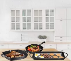 Bruntmor Pre Seasoned Cast Iron 3 Piece Grill Bundle Gift Set, Black Set Of 3