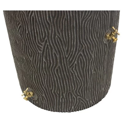 The Impressions Bark 50 Gallon Rain Saver is perfect for virtually any home. Its appearance emulates the rough texture of a large tree trunk, and with a deep welled top, you can plant an array of flowers or even a small herb or vegetable garden. The top also includes the Good Ideas original, integrated channel that automatically diverts overflow to the front of the barrel and keeps your foundation from flooding. The large opening can be used for 2×3 or 3×4 downspouts and is covered with a soft, fine mesh, plastic screen that keeps out heavy debris. Also included with the barrel are two sturdy brass spigots to install in the offset spigot locations.