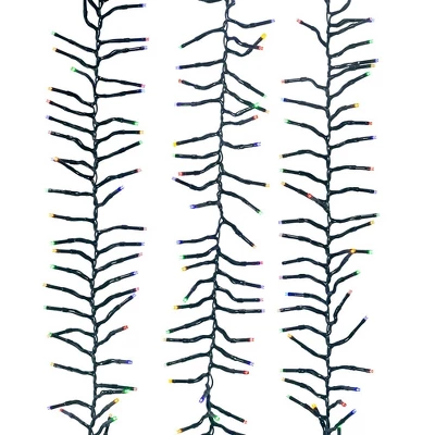 This 480-Light 16-Foot Connectable Multi-Colored LED Cluster Garland from Kurt Adler is a fun, modern addition to your home holiday lighting décor. This LED cluster garland features 480 multi-colored lights, green wire, a 13-foot lead wire with controller and an outdoor UL adapter. Up to 3 garlands can be connected at one time.