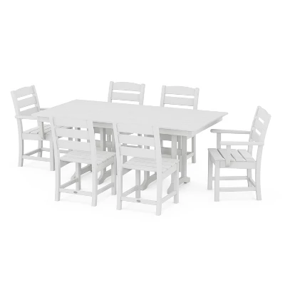 Gather family and friends around the table for an al fresco meal with the Lakeside 7-Piece Farmhouse Dining Set by POLYWOOD. The comfort factor is turned way up by the relaxing Lakeside arm and side chairs, and the spacious, easy-to-clean Lakeside table is the perfect place to show off your culinary creations in all four seasons.