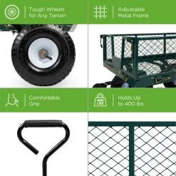 Best Choice Products Dual-Wheel Home Wheelbarrow Yard Garden Cart For Lawn, Construction – Green