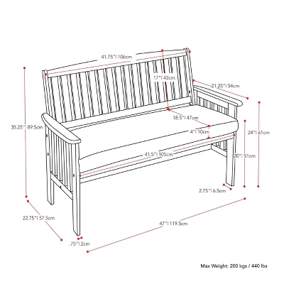 With traditional lines that never go out of style, this bench features a slatted backrest and foam padded seat cushion for comfort