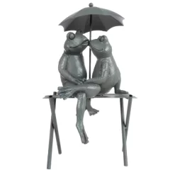 Nature Spring Small Frog Couple Under Umbrella Resin Garden Statue – 14.5″, Antique Bronze
