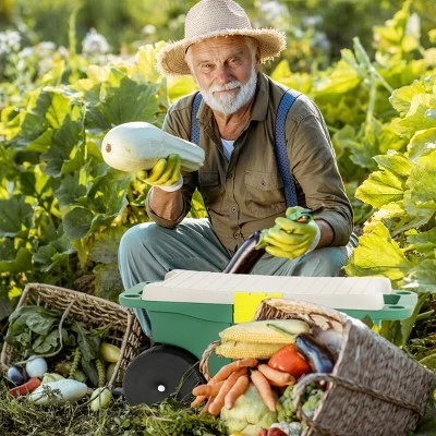 The Garden Storage Wagon Cart with Seat from Nature Spring is handy for hauling tools, supplies, or plants around the yard, garage, or job site. This rolling utility cart has 6-inch hard plastic wheels for all-terrain mobility, built-in handles, a removable tool tray, and a latching lid that doubles as a bench seat that prevents you from bending, squatting, or kneeling while performing low to the ground tasks. Constructed of rugged Polypropylene, this all-weather scooter can hold up to 220-pounds and can be hosed off with water after use.