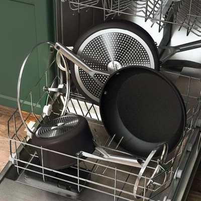 Ninjaâ„¢ NeverStick® Signature Cookware is the cookware that won’t stick, chip, or flake. This cookware has a hard-anodized exterior that is extremely durable and scratch resistant. With a max manufacturing temperature of 30,000°F, our cookware won’t rapidly lose nonstick like traditional pans made at 900°F can. Our exclusive NeverStick® interior coating heats quickly and evenly to ensure perfect results every time and is metal-utensil safe and dishwasher safe. Oven safe to 500°F. All range capable: gas, electric, glass ceramic, and induction. Sear, sauté, griddle, pan fry, bake, roast, broil. Fully backed by Ninjaâ„¢ 10 Year Guarantee. *Use as directed.