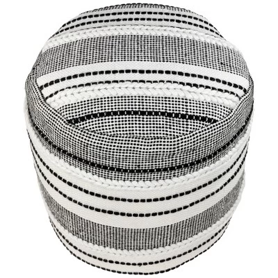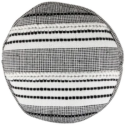 This outdoor woven pouf with thermocol beans filling is the perfect addition to any outdoor living area. This seating or foot rest will take up minimal space while adding comfort and style to your outdoor living. It will surely withstand the elements as it is designed with durable and weather-resistant construction. The detailed woven design will blend perfectly, as the neutral white and black tones compliment most color palettes. Whether you’re relaxing out on your patio or entertaining guests on your deck, this pouf is a must have.Product Features:Tall round outdoor pouf Mosaic white, black and gray woven knitAccented with white braided details Thermocol beads provide plushness and cozinessMultipurpose: usable as a footstool or for added seatingSuitable for indoor and outdoor use Care instructions: use soap or detergent, rinse with clean water and allow to air dryDimensions: 18″ high x 18″ diameterMaterial(s): polyester