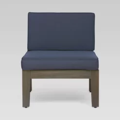 Kyoto 3pc Outdoor Acacia Wood Chaise Lounge Set With Cushions – Teak/Blue – Christopher Knight Home