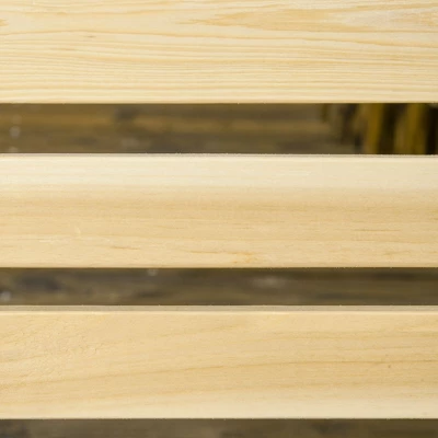 Create your own garden getaway with Outsunny. This outdoor swing seat offers a wide and spacious two-person seat so you can enjoy the fresh air and autumn breeze with a friend. Its solid fir wood frame is sealed for water resistance while accenting the natural woodgrain pattern. Offering a classic slatted design, it brings a farmhouse aesthetic that doubles as an easy-drying surface. Enjoy two tables for belongings and sit close on a loveseat-like design. Get out, get comfy, get Outsunny.