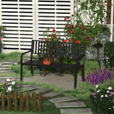 Outsunny 50" Garden Park Bench, Slatted Steel Outdoor Decorative Loveseat For Patio Lawn -Outdoor Garden GUEST 3d15429d 029c 4eaf 97f0 0cb7b5ceeec2