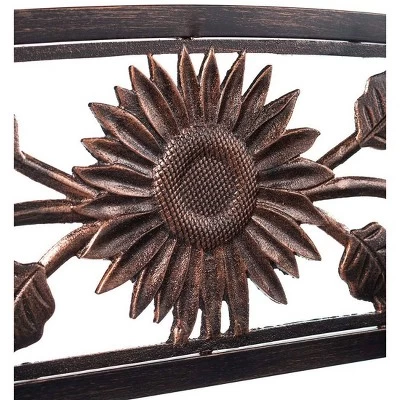 - Sturdy metal garden bench with detailed sunflower design