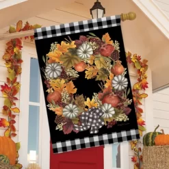 Fall Pumpkin Wreath Floral House Flag Autumn 28″ X 40″ Briarwood Lane