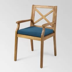 Perla 6pc Acacia Wood Patio Chat Set – Blue – Christopher Knight Home
