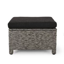 Puerta 2pk Outdoor Wicker Ottomans With Cushions – Black/Dark Gray – Christopher Knight Home