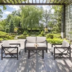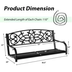Costway 2-Person Metal Outdoor Porch Swing Hanging Patio Bench 485 Lbs Capacity BlackBrown