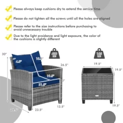 Costway 2PCS Patio Rattan Ottomans Seat Side Table Storage Box Footstool W/Cushions Navy