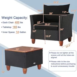 Costway 3PCS Patio Rattan Furniture Set Cushioned Sofa Storage Table With Wood Top Red/Black
