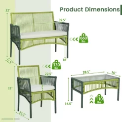 Costway 4 PCS Patio Furniture Set Outdoor Conversation Sofa Tempered Glass Coffee Table
