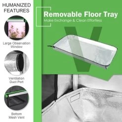 Costway 48”x24”x60” Mylar Hydroponic Grow Tent W/Observation Window & Floor Tray GrayBlack