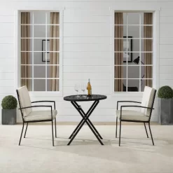 3pc Thatcher Outdoor Steel Conversation Set Creme/Driftwood – Crosley