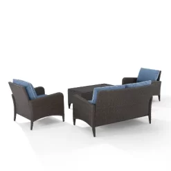 Kiawah 4pc Outdoor Wicker Conversation Set With Sofa, Arm Chairs & Coffee Table Blue – Crosley