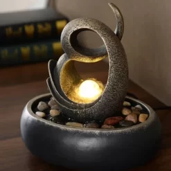 31.89″ Glazed Vase Outdoor Floor Fountain With LED Light – Red – Teamson Home