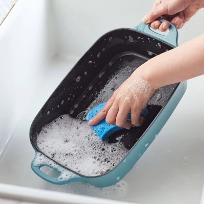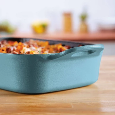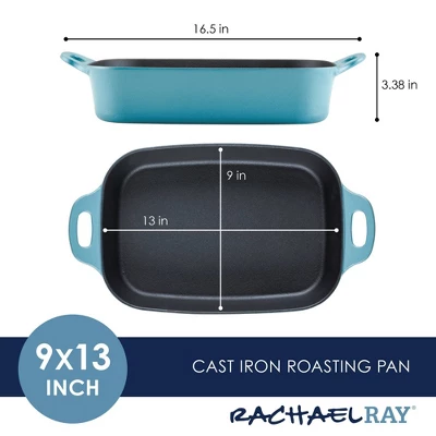 Meet your new kitchen hero! Get incredible cast iron performance that’s easy to maintain with this Rachael Ray NITRO Cast Iron Roasting Pan that delivers the classic durability and performance of cast iron without the hassle of complicated cleaning, making this 9-inch x 13-inch meal maker ideal for use as a lasagna pan, casserole pan, or roaster. A next-generation NITRO heat treatment seals and smooths surfaces for amazing, easy-to-use, easy-to-clean cast iron that’s fortified to resist rust, chipping, and staining but still holds brilliant colors to complement any kitchen style. Induction capable and made to last a lifetime (and look great for a lifetime, too), this durable cast iron roasting pan is pre-seasoned and ready to deliver. See why cast iron is one of Rachael’s favorite ways to make meals even more delish.