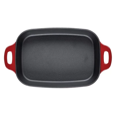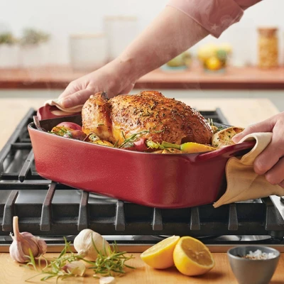 Meet your new kitchen hero! Get incredible cast iron performance that’s easy to maintain with this Rachael Ray NITRO Cast Iron Roasting Pan that delivers the classic durability and performance of cast iron without the hassle of complicated cleaning, making this 9-inch x 13-inch meal maker ideal for use as a lasagna pan, casserole pan, or roaster. A next-generation NITRO heat treatment seals and smooths surfaces for amazing, easy-to-use, easy-to-clean cast iron that’s fortified to resist rust, chipping, and staining but still holds brilliant colors to complement any kitchen style. Induction capable and made to last a lifetime (and look great for a lifetime, too), this durable cast iron roasting pan is pre-seasoned and ready to deliver. See why cast iron is one of Rachael’s favorite ways to make meals even more delish.