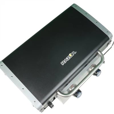 Make BBQ night every night of the summer with the Razor 25-Inch 2-Burner Portable Liquid Propane Gas Griddle.This gas grill features 2 stainless steel burners for a total of 20,000 BTU of power to keep you going. Set up this versatile, portable grill on a table and get to frying. For a simple startup and an easy light, fire up the grill with the push-and-turn ignition. You’ll have plenty of room to grill for everyone at your next backyard barbeque or weekend tailgate. With a 318 square inch cooking surface, whip up some burgers, eggs, and bacon, or make a stir fry to show off your skills. Use the steel lid to steam or melt foods. This handy lid also provides extra protection to use when cooking in unexpected weather. The mobile grill’s compact design makes transportation convenient if your grilling expertise is requested elsewhere.For the food grilling enthusiast, bring your friends and family together to spend days cooking out in the backyard with the 2-Burner Portable LP Gas Griddle by Razor.