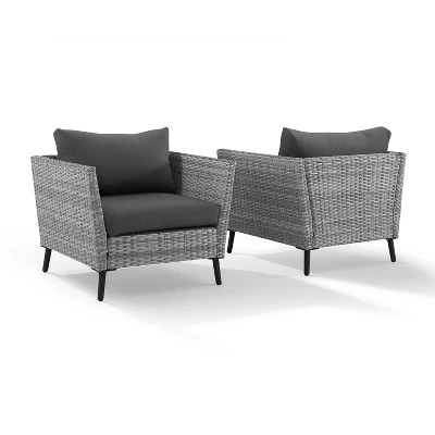 Bring mid-century modern design outdoors with the Richland 2pc Armchair Set. With slightly tapered legs and clean lines, this chair set is effortlessly chic. All-weather resin wicker is woven over a durable powder-coated steel frame, while the moisture-resistant cushions add comfort. The Richland chairs are a chic addition to your porch or patio.
