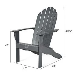 Costway Outdoor Adirondack Chair Solid Wood Durable Patio Garden Furniture GrayNaturalWhite