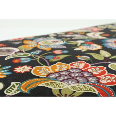 The jewel-toned garden of Telfair Midnight Black features whimsical flora and instantly brings vibrant color to your favorite living space. In gold, green, purple and red, the pattern really pops against the black ground. Telfair Midnight Black was created to be paired with a number of other Pillow Perfect patterns and solids and is available in a variety of pillow/cushion shapes and sizes.