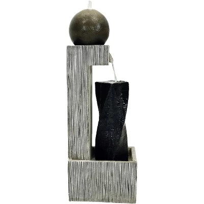 Add an artistic and contemporary water feature to your garden, patio, yard, or other landscaping area with the Modern Artistry water fountain featuring LED lights. Made of durable polyresin, this fountain features a variety of shapes and textures that lend visual interest to this outdoor decor piece while remaining resistant to the elements outdoors. Water streams from the top of the sphere and streams out from the spout onto the black column below. The water flows down the ridges of the black column to the bottom basin where it collects and circulates back to the top via a submersible electric pump. Enjoy this beautiful water feature at night with the LED lights illuminating the fountain from the top of the sphere and the column. This fountain includes an electric submersible pump that makes it simple to set up without any complicated installation or plumbing involved. Just place this fountain anywhere, plug it in to your nearest outlet, and relax, enjoying the soothing sounds and beautiful features.